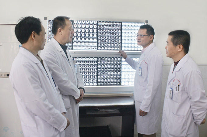肿瘤学科带头人林尤恩(右二)副院长组织肿瘤内外科、放疗科专家多科会诊。邹仰光 摄