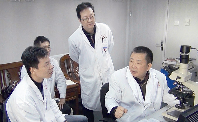 中大肿瘤医院张惠忠教授到病理科指导分子病理诊断。刘晓彬 摄